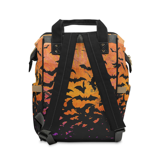Occult Bat Skeleton Multifunctional Diaper Backpack - Orange + Black