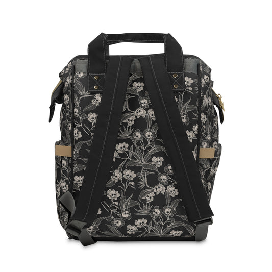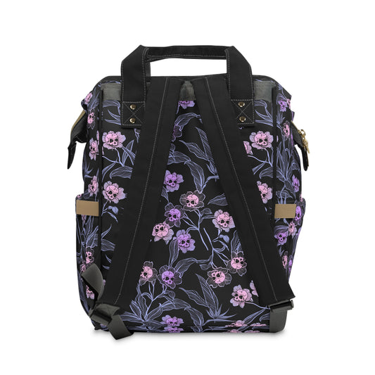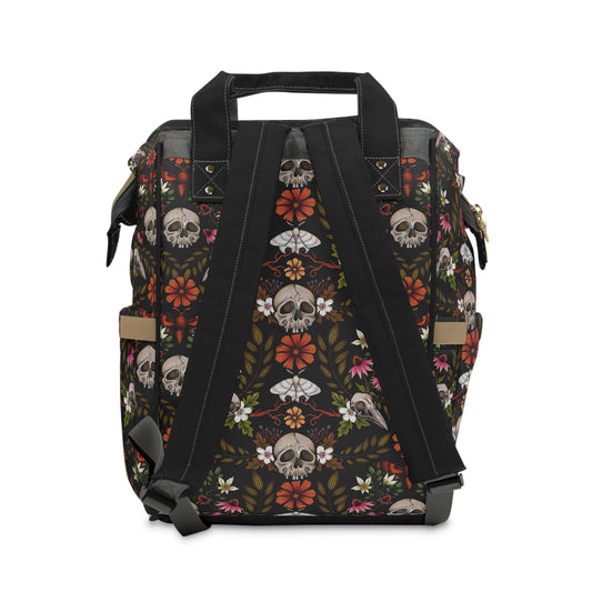 Dark Cottagecore Floral Skull Multifunctional Diaper Backpack