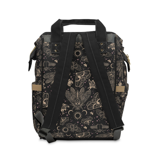 Witchy Cicada Multifunctional Diaper Backpack - Black