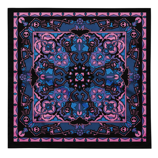 Dancing Skeleton Bandana - Pink, Turquoise, + Black