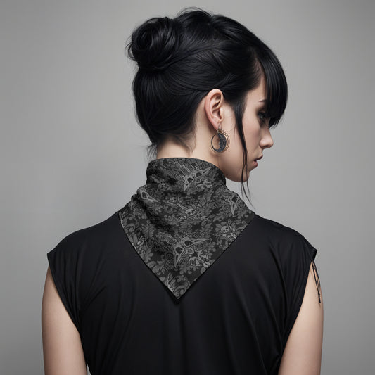 Gothic Autumn Bird Skeleton Bandana - Rust Red