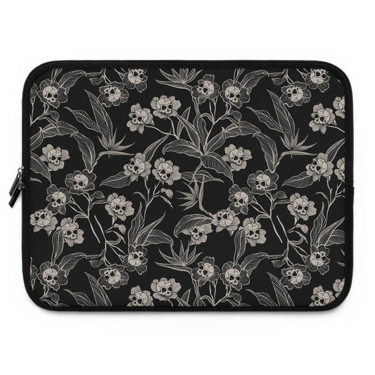 Gothic Floral Skull Flower Laptop Sleeve - Black + Cream