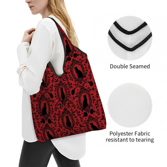 Baroque Cat Folding Reusable Grocery Bag - Red