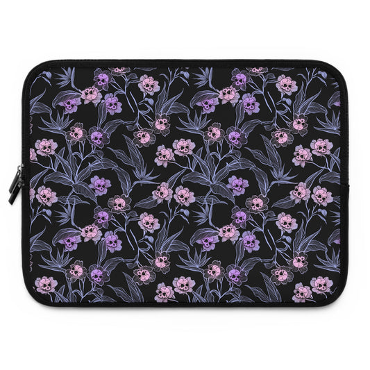 Pastel Goth Floral Neoprene Laptop Sleeve - Pink + Black