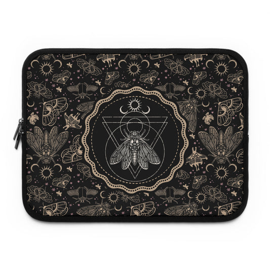 Witchy Occult Cicada Laptop Sleeve - Black + Gold