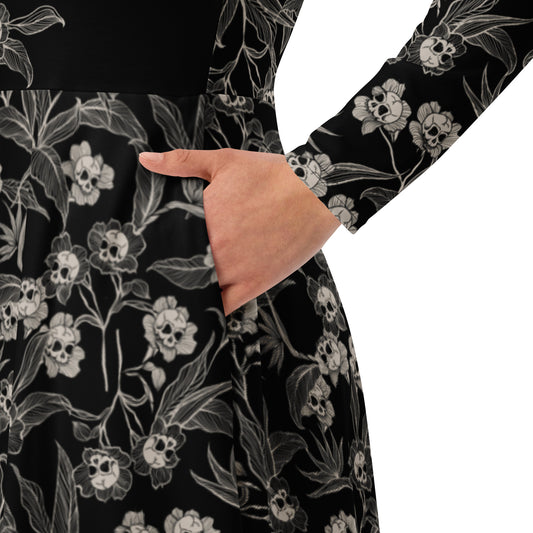Gothic Floral Long Sleeve Pocket Dress - 2XS to 6XL