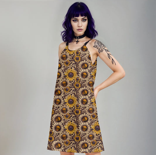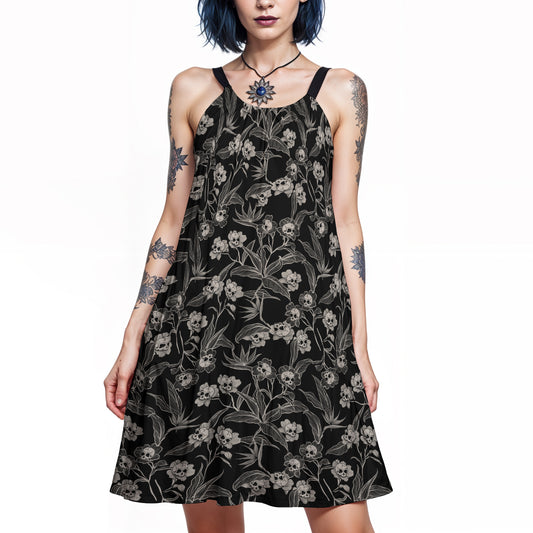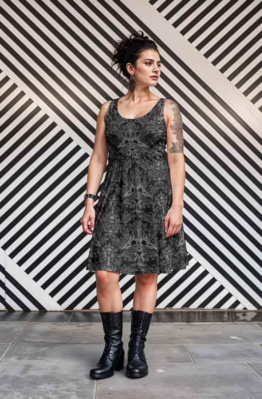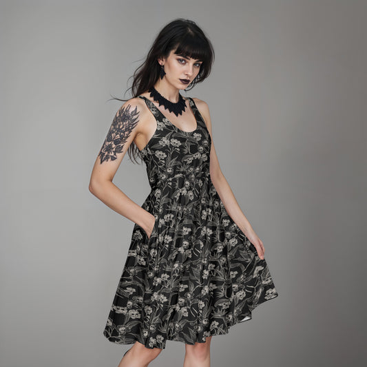 Damask Bones Stretchy Skater Dress w/ Pockets