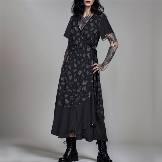 Enchanted Forest Dark Cottagecore Wrap Dress