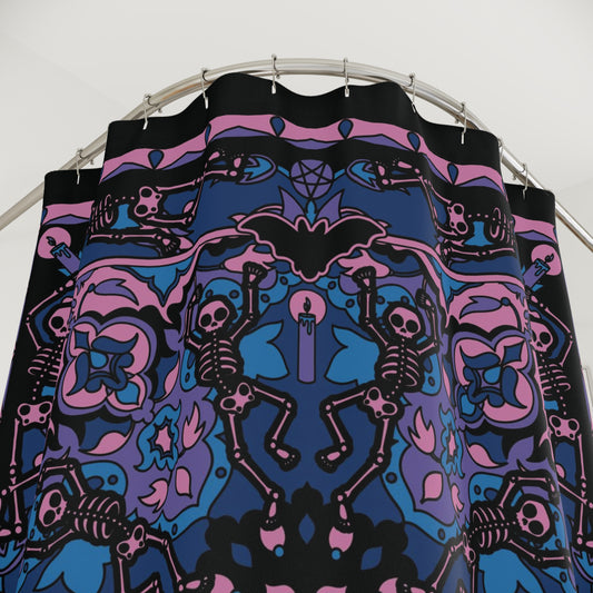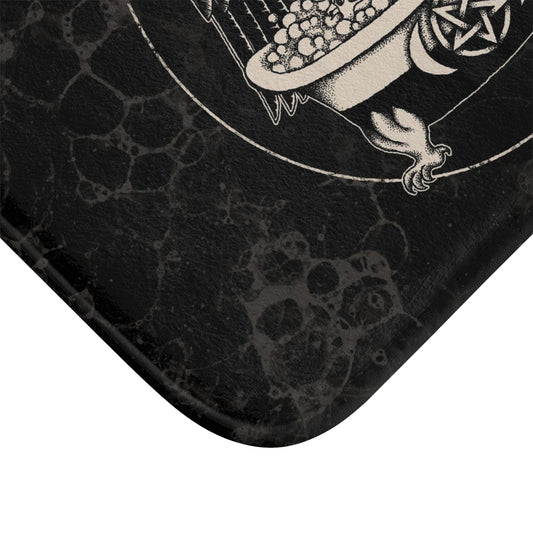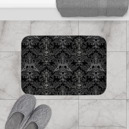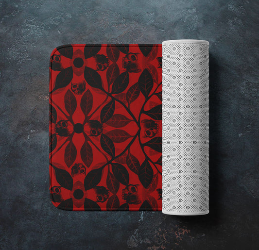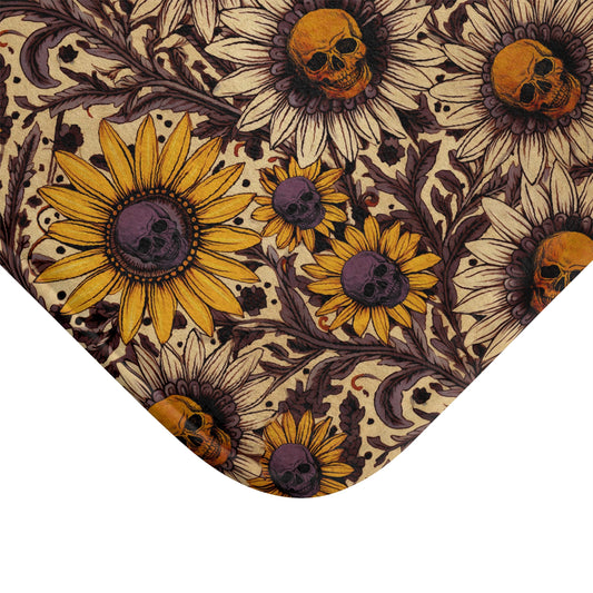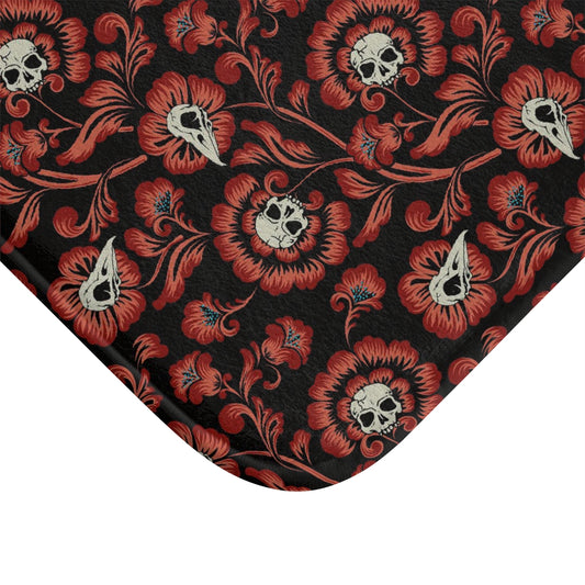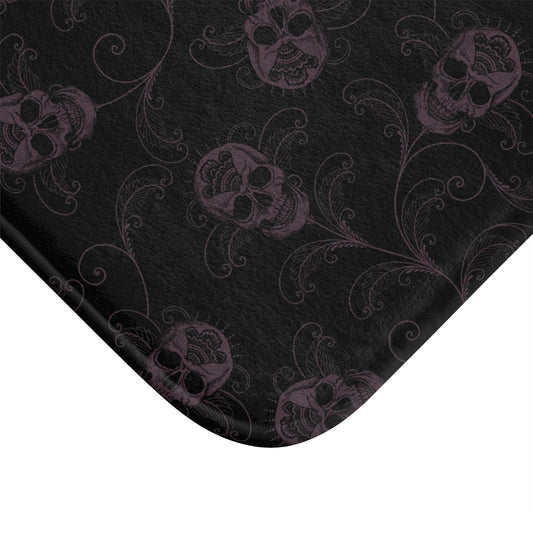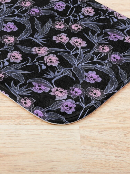 Pastel Goth Skull Flower Bath Mat - Pink & Black