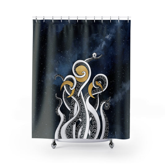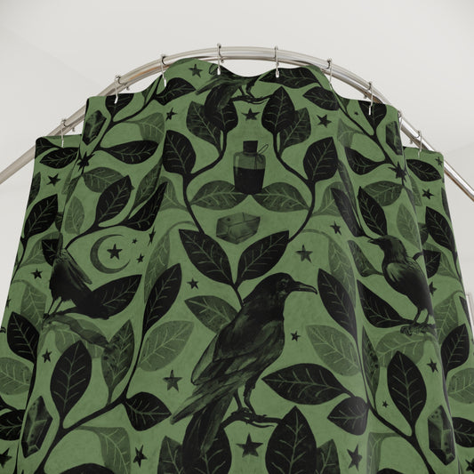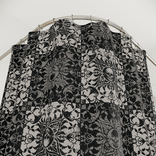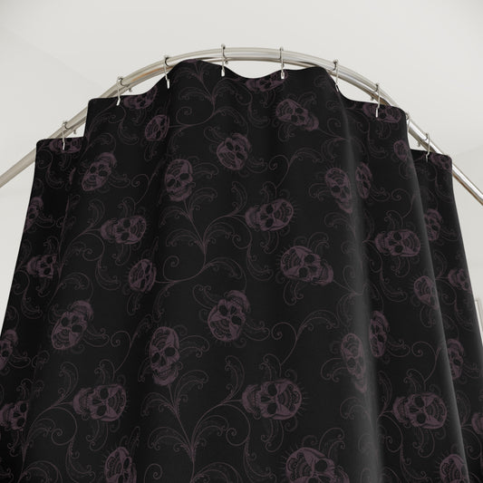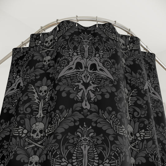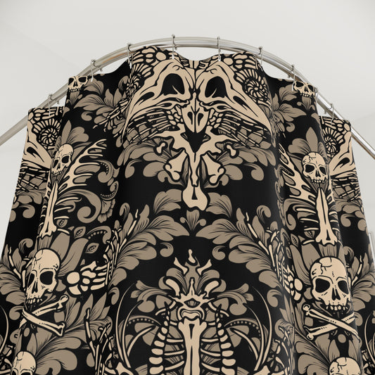 Fall Floral Bird Skeleton Shower Curtain - Rust Red