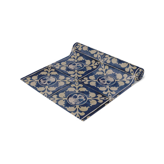 Spooky Moorish Tile Table Runner - Blue & Beige