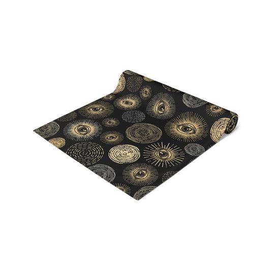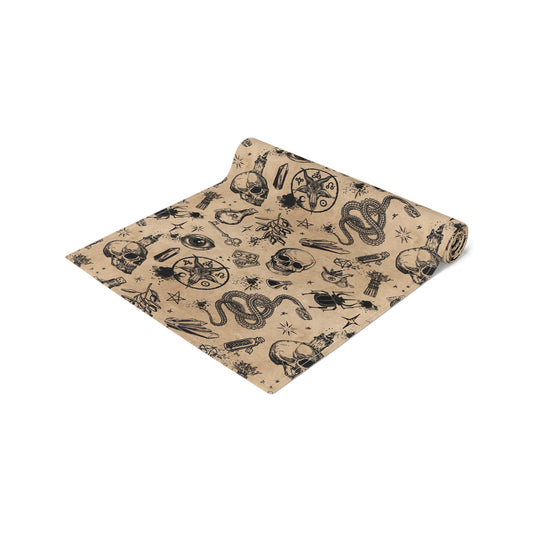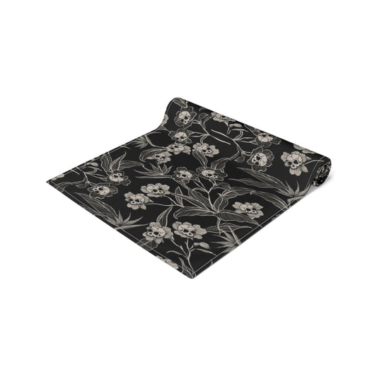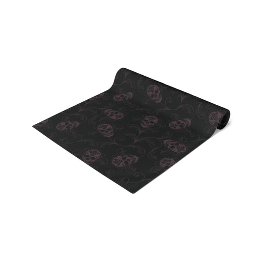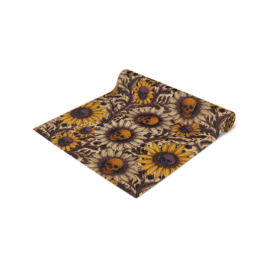 Fall Sunflower Skull Table Runner - Eggplant & Gold