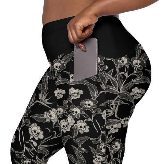 Gothic Floral Skull Flower Leggings w/ Pockets