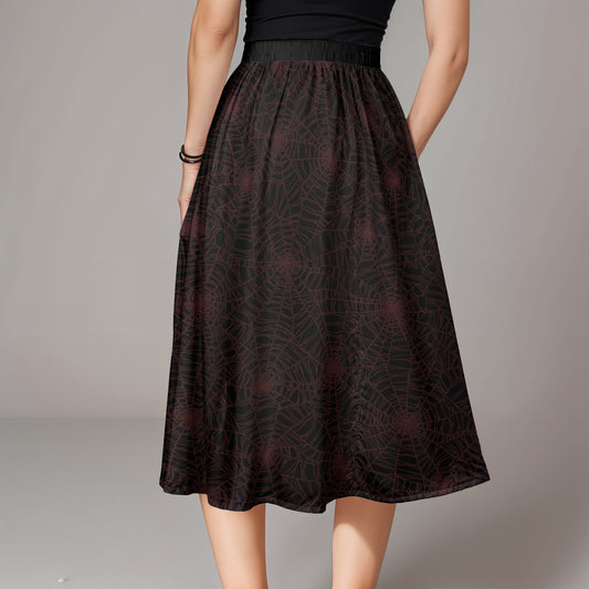 Spider Web Midi Skirt w/ Pockets - Black + Deep Burgundy