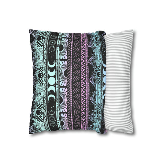 Esoteric Pastel Striped Throw Pillow Cover - Pink & Turquoise