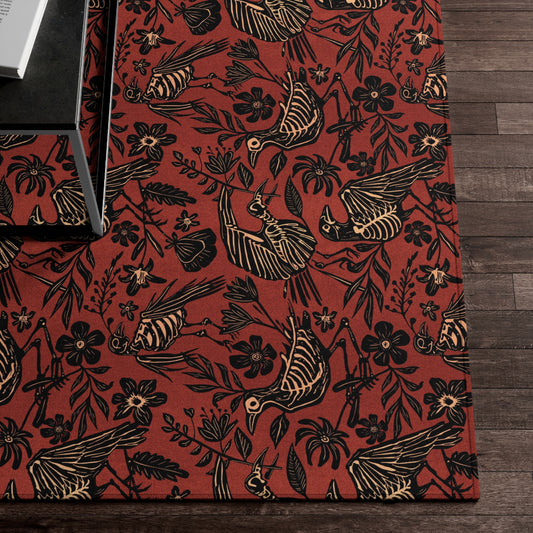 Fall Folk Art Bird Skeleton Indoor/Outdoor Area Rug - Rust Red