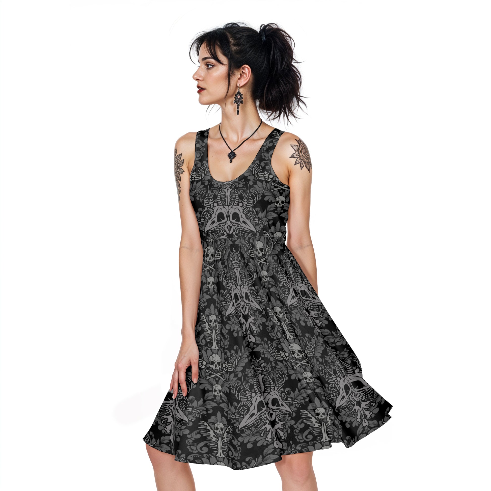 Damask Bones Stretchy Skater Dress w/ Pockets