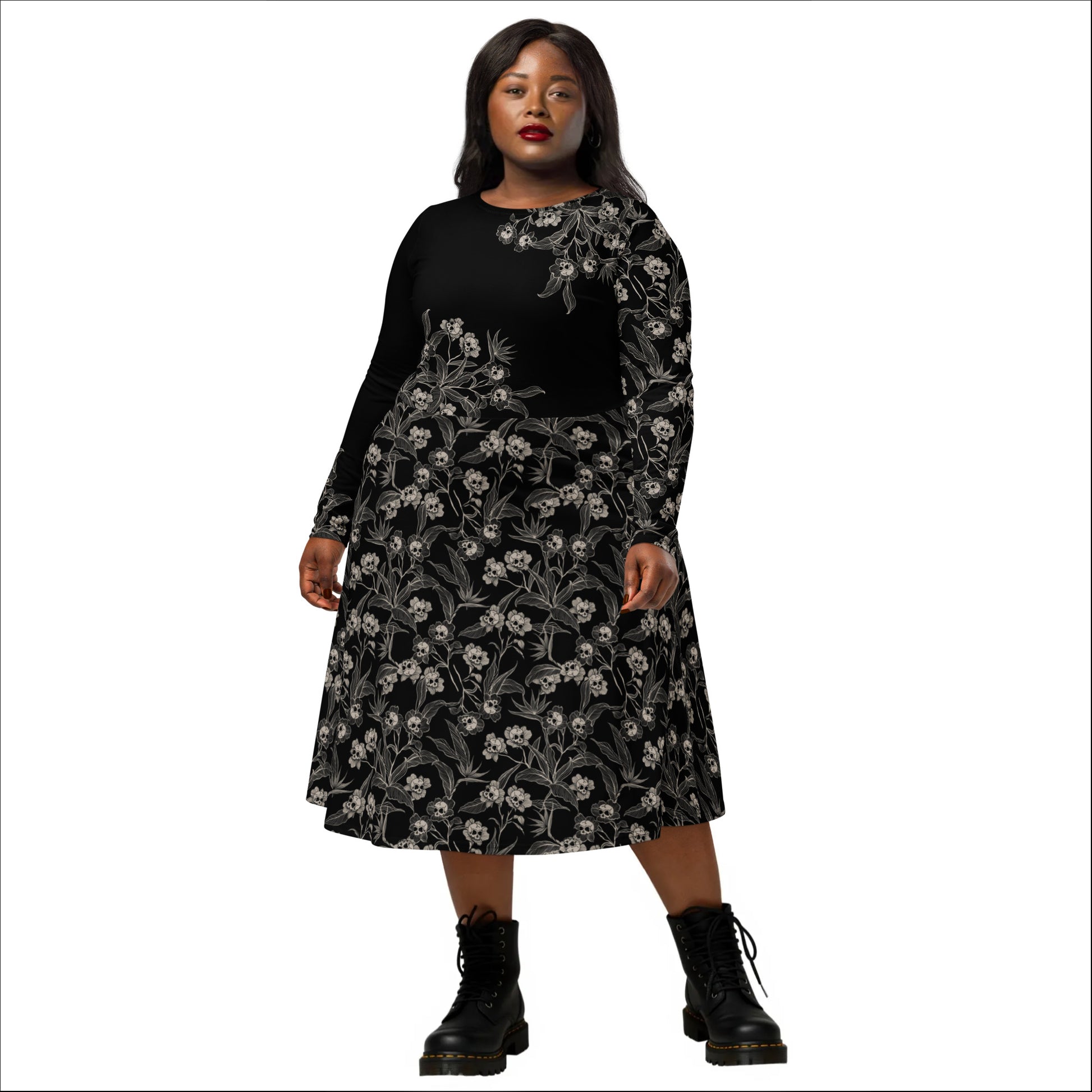 Gothic Floral Long Sleeve Pocket Dress - 2XS to 6XL